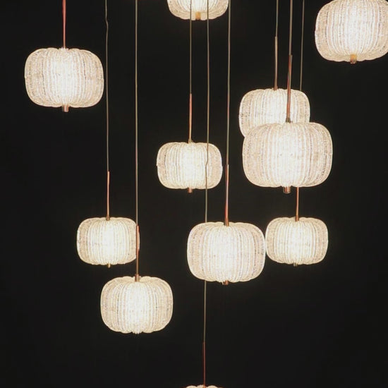 Elevate your interiors with the Luxury Dreamy Pumpkin Crystal Staircase Pendant Light, a harmonious blend of organic inspiration and modern craftsmanship. Drawing from the whimsical curves of a pumpkin and the graceful spiral of a staircase, this handblown crystal glass fixture casts a soft, ethereal glow, transforming any space into a sanctuary of sophistication.