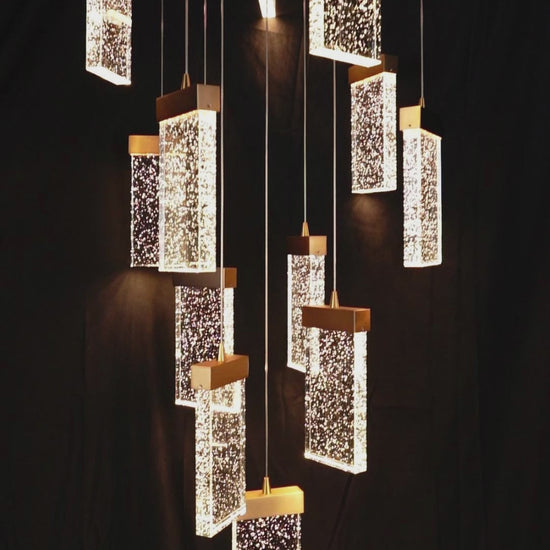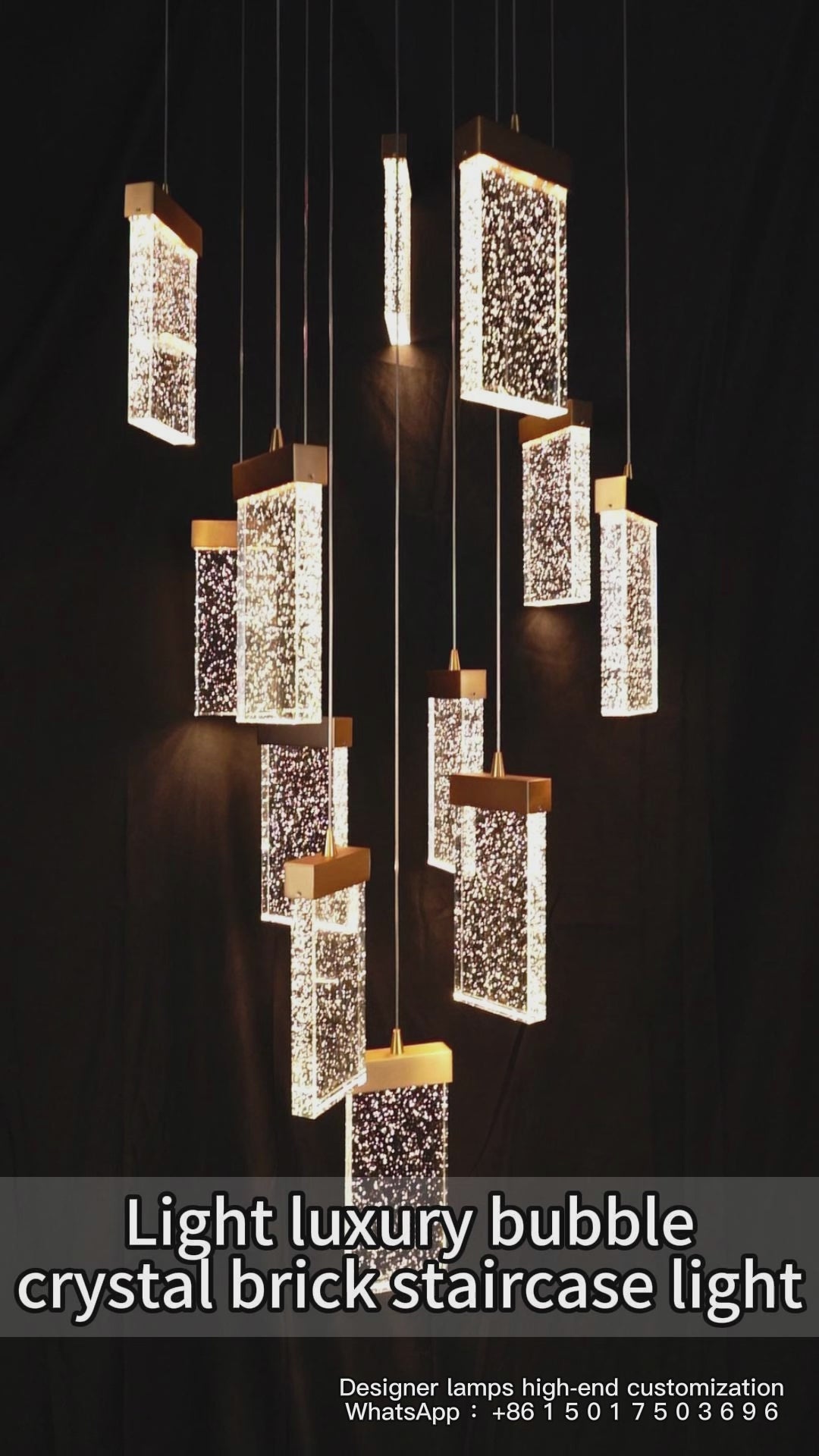 Add a touch of elegance and brilliance to your space with our Bubble Crystal Stair Chandelier. This stunning fixture features a sleek cylindrical crystal rod containing delicate bubbles to create a dazzling light effect, perfect for stairways, villas, hotels and high ceiling spaces.