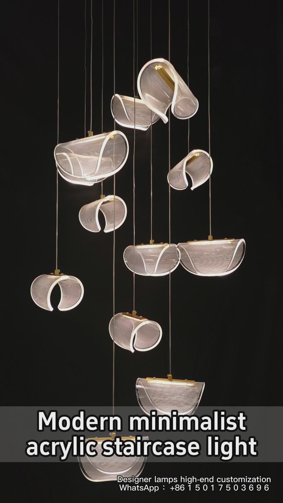 ✨ Modern acrylic staircase light, minimalist pendant chandelier, contemporary lighting design, high-transparency acrylic fixture.