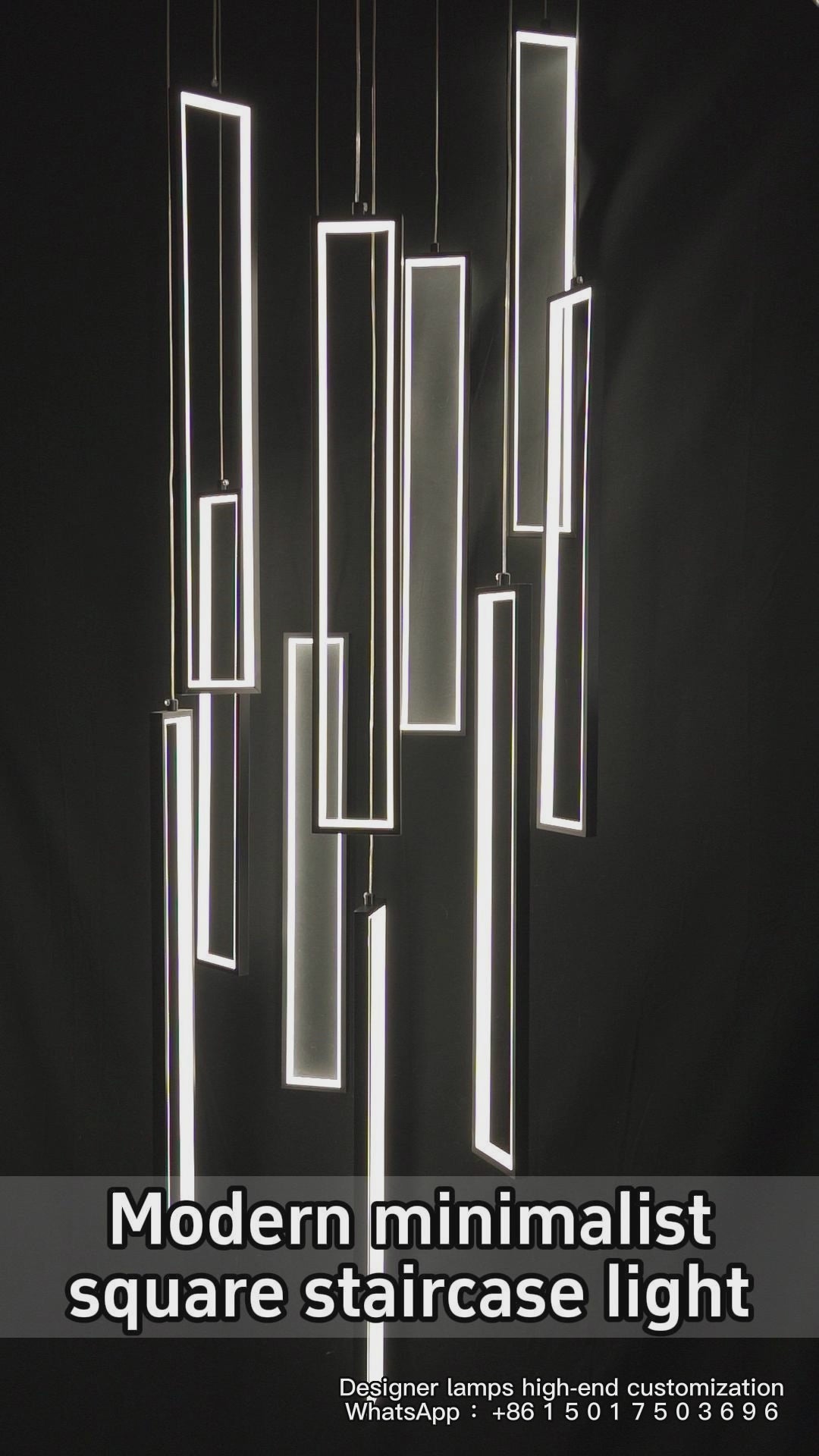 ✨Modern square pendant light, minimalist staircase chandelier, contemporary geometric lighting, architectural décor.