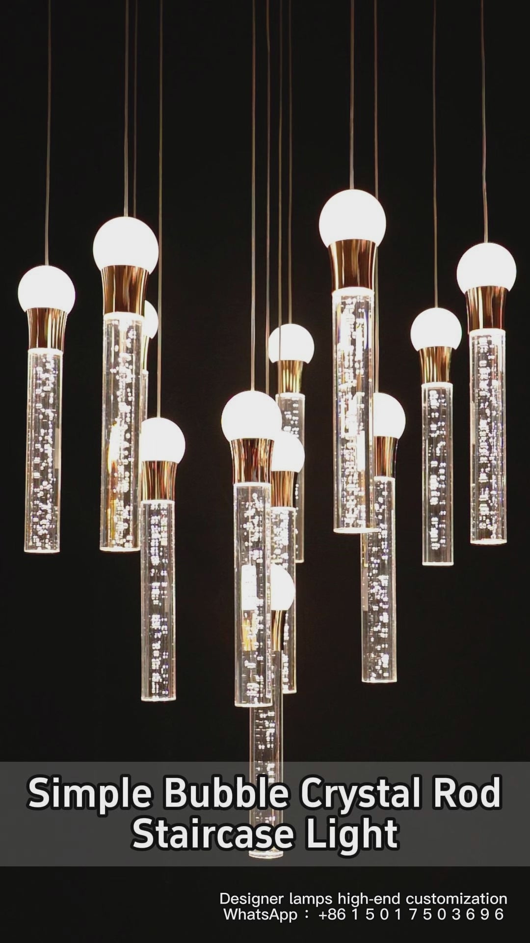 Simple Bubble Crystal Rod Staircase Pendant Light – Effortless Elegance, Modern Clarity