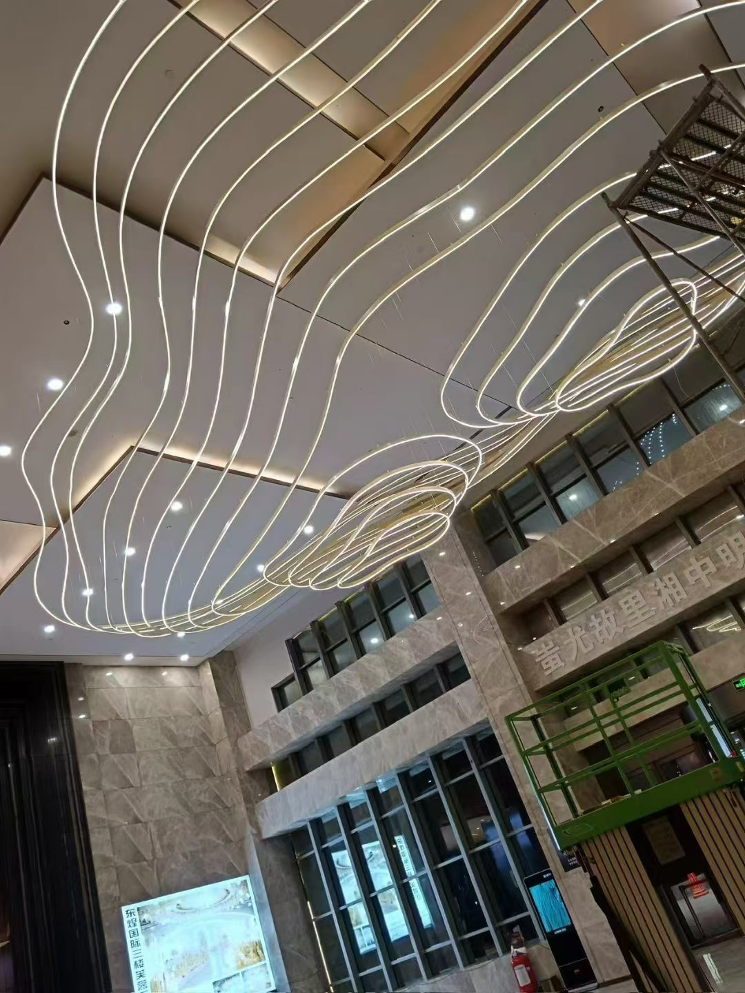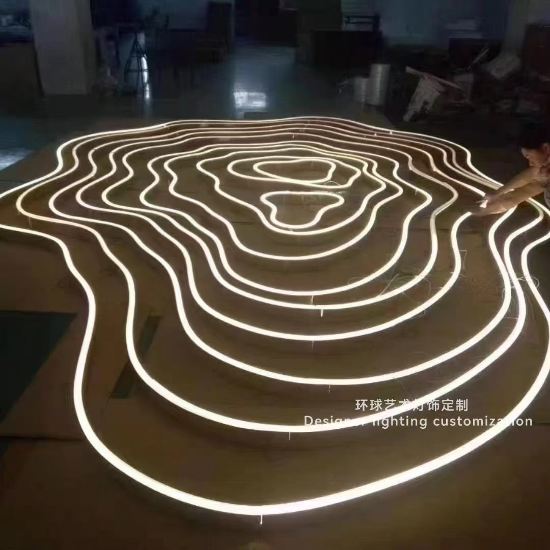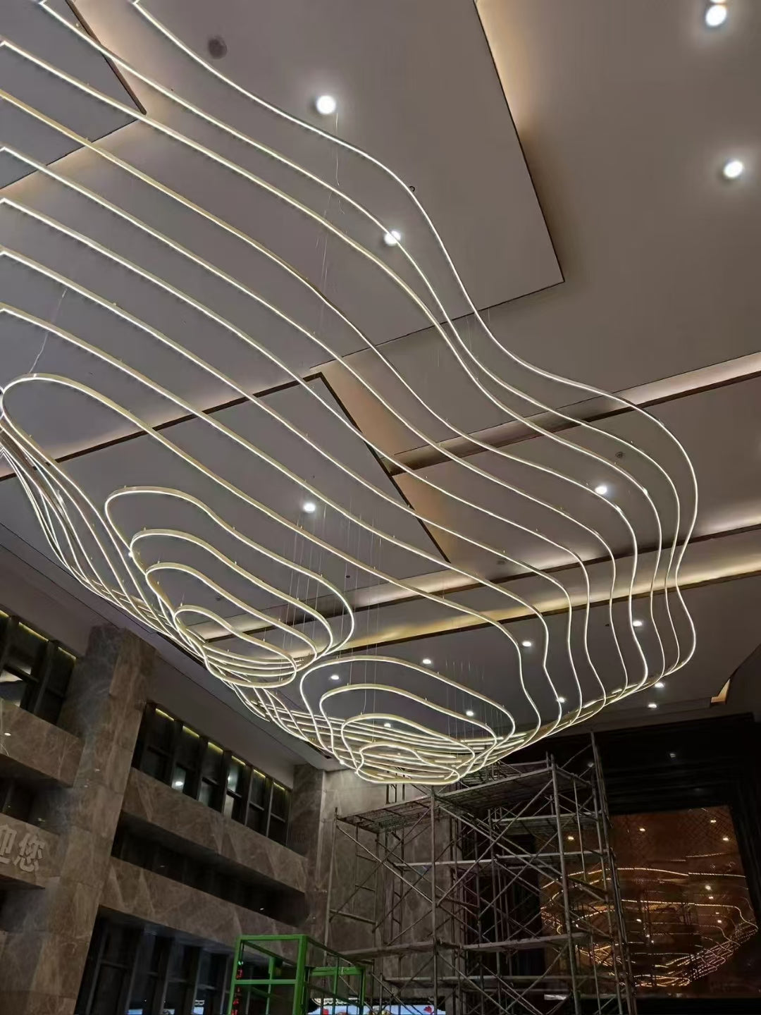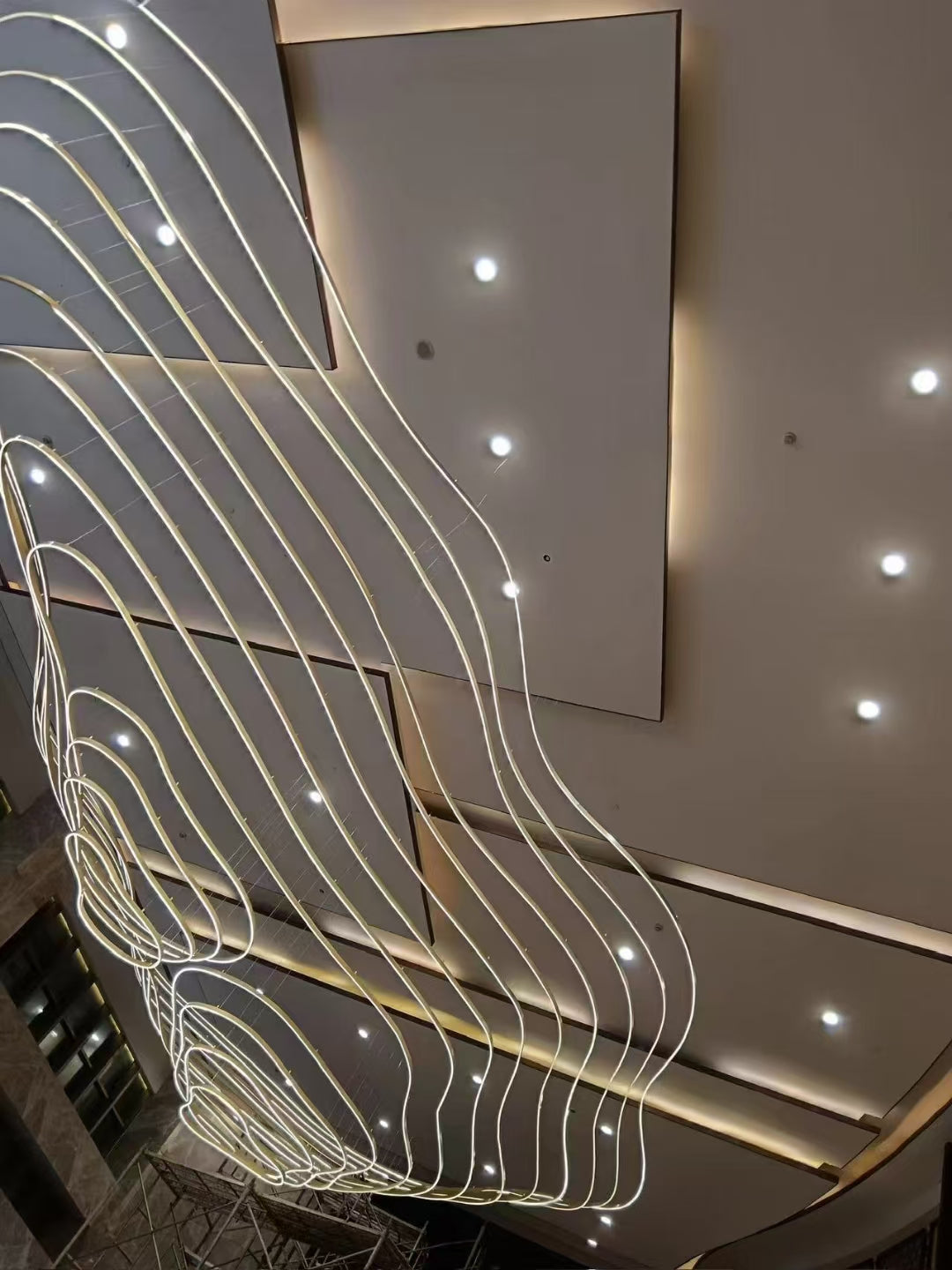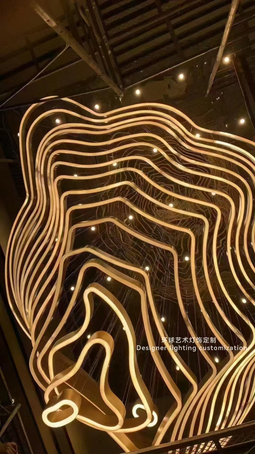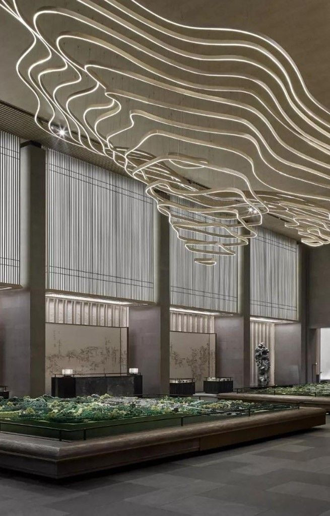 Mountain contour: the lamp body shape extracts the ups and downs and winding lines of the mountains, and outlines the silhouette of the mountains through LED light strips, forming a quiet or dynamic lighting art;