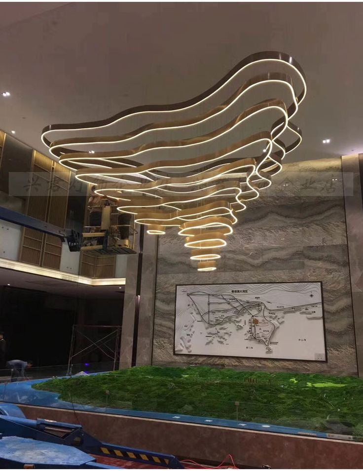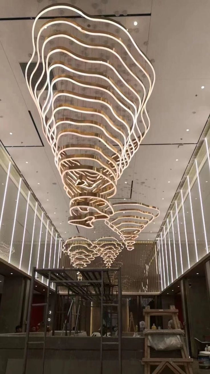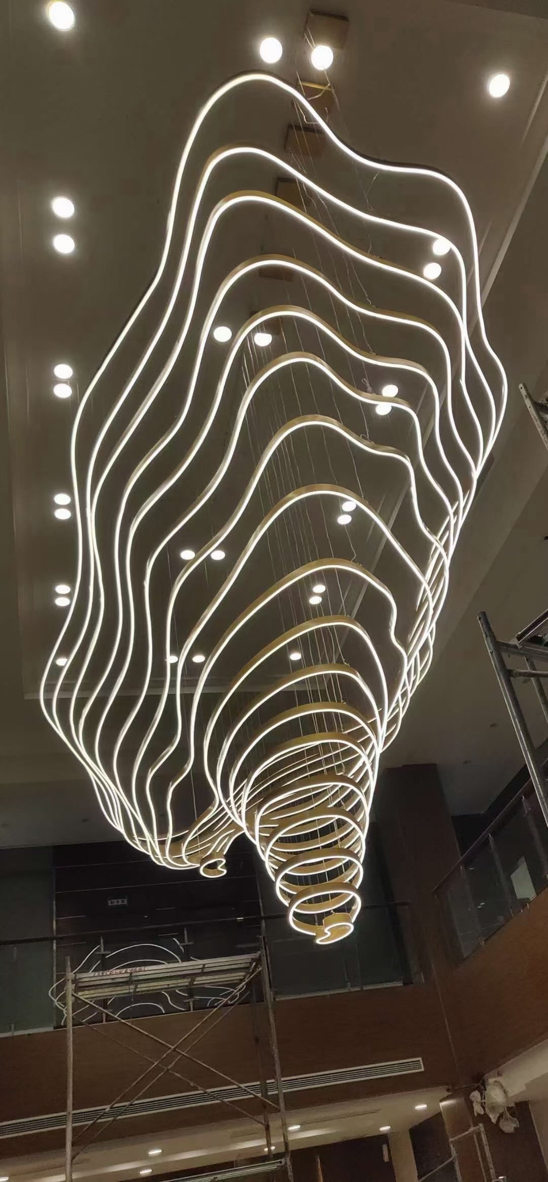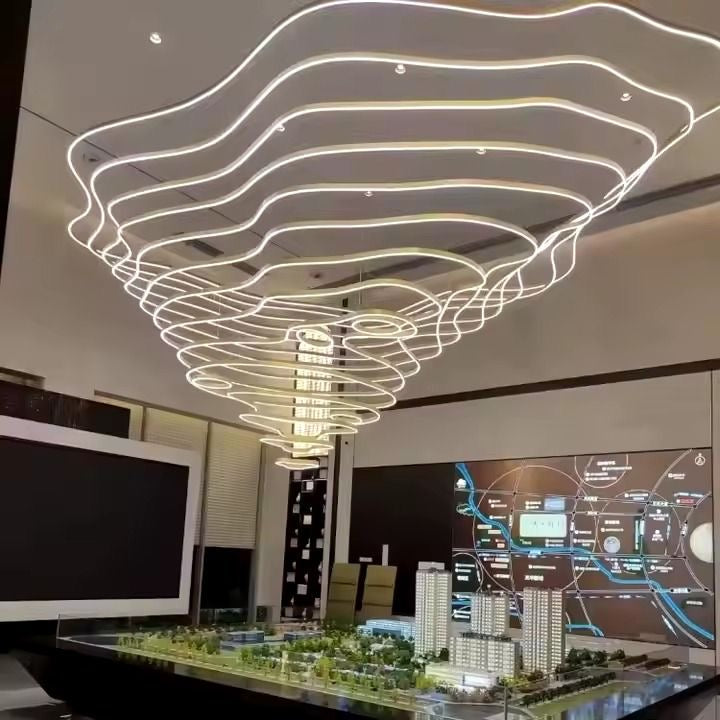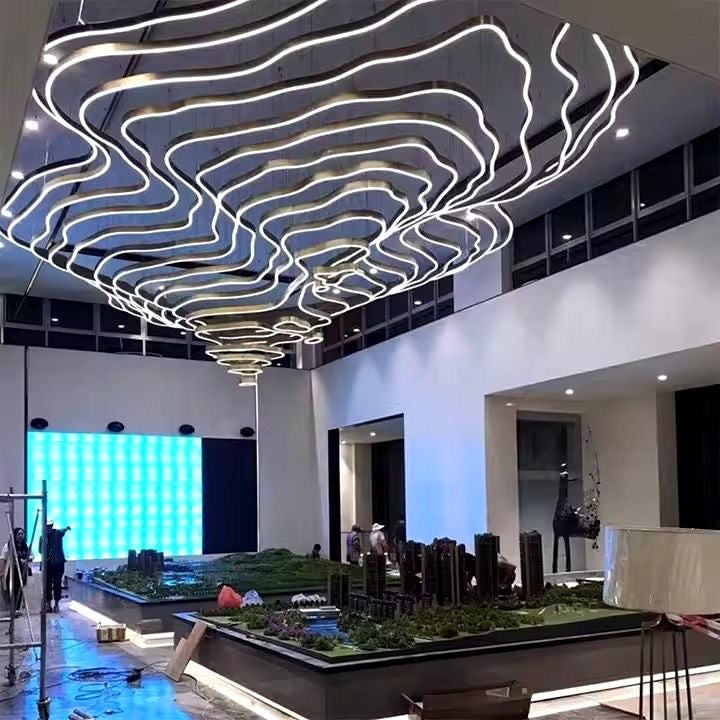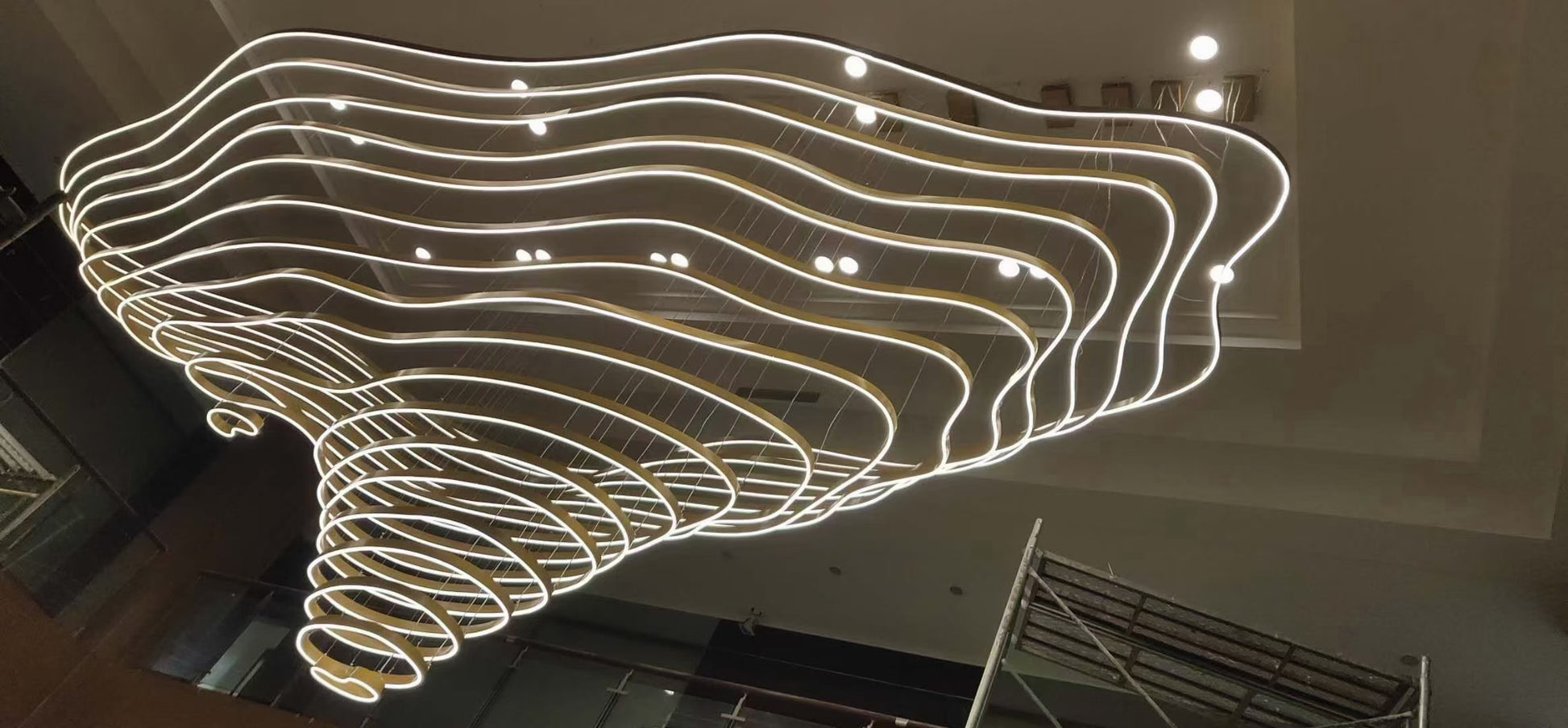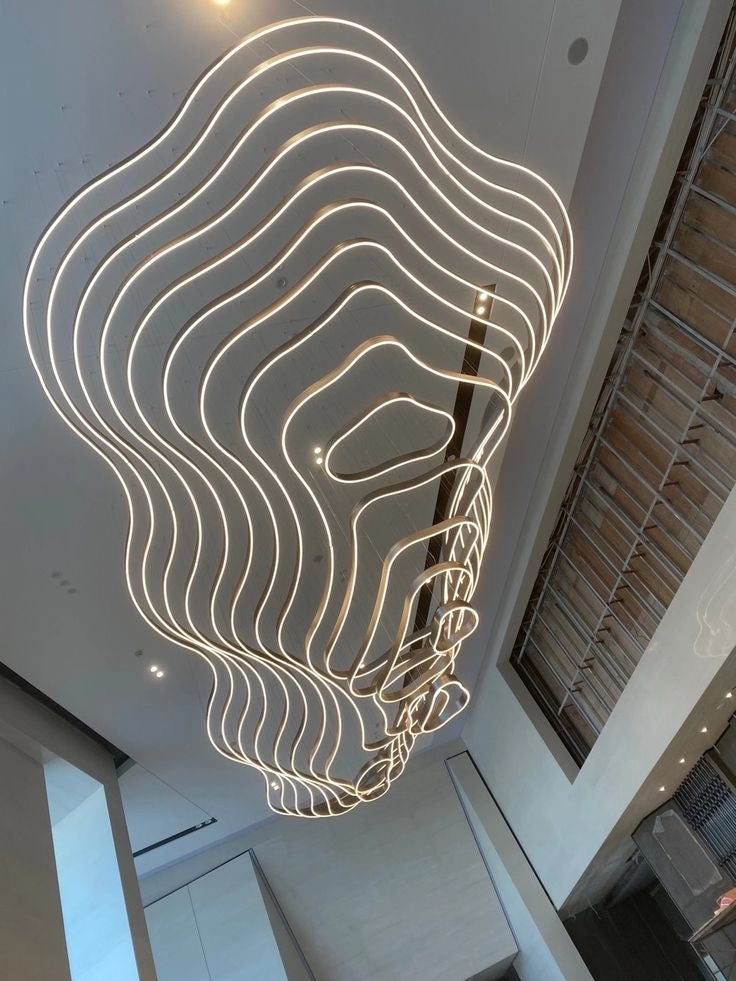Mountain contour: the lamp body shape extracts the ups and downs and winding lines of the mountains, and outlines the silhouette of the mountains through LED light strips, forming a quiet or dynamic lighting art;